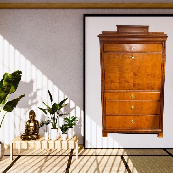 Wunderbar schlichter Sekretär mit praktischem Innenleben. Hier hat alles Platz, was sonst chaotisch auf einem simplen Schreibtisch herumliegt…