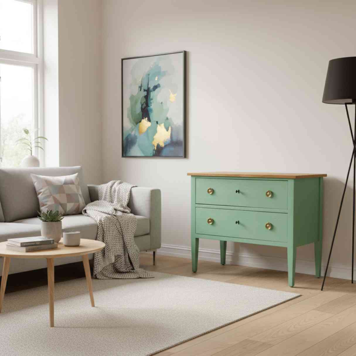 So schön grün! Macht einfach gute Laune. Die klassizistische Kommode in grün macht einen zierlichen Eindruck und hat doch ausreichend Stauraum zu bieten. Must have!