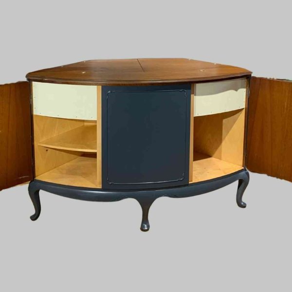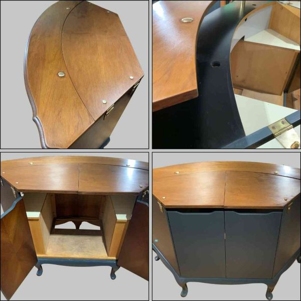 Das ist mal ein Möbelstück! Vintage Bar aus den (vermutlich) 1950er Jahren. Auftragsarbeit für einen Schneidermeister in Nordhessen. Von uns liebevoll zu neuem Leben erweckt. Wer mag, kann sich noch einen kleinen Kühlschrank einbauen oder ein Bier-Fässchen reinstellen. Let’s party!